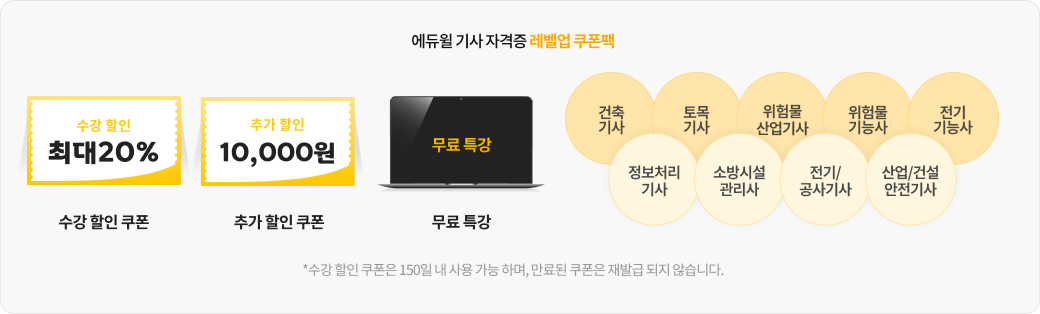 모두의 레벨업을 응원하며! 에듀윌 기술 자격증 쿠폰팩 지원