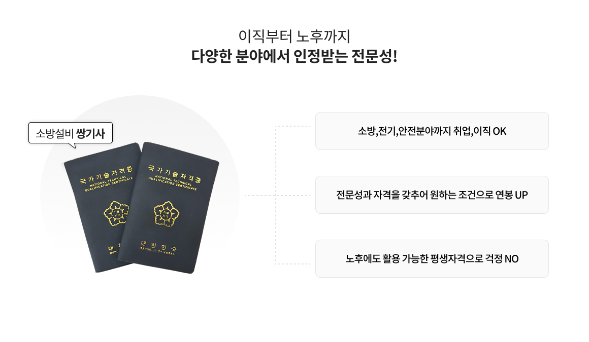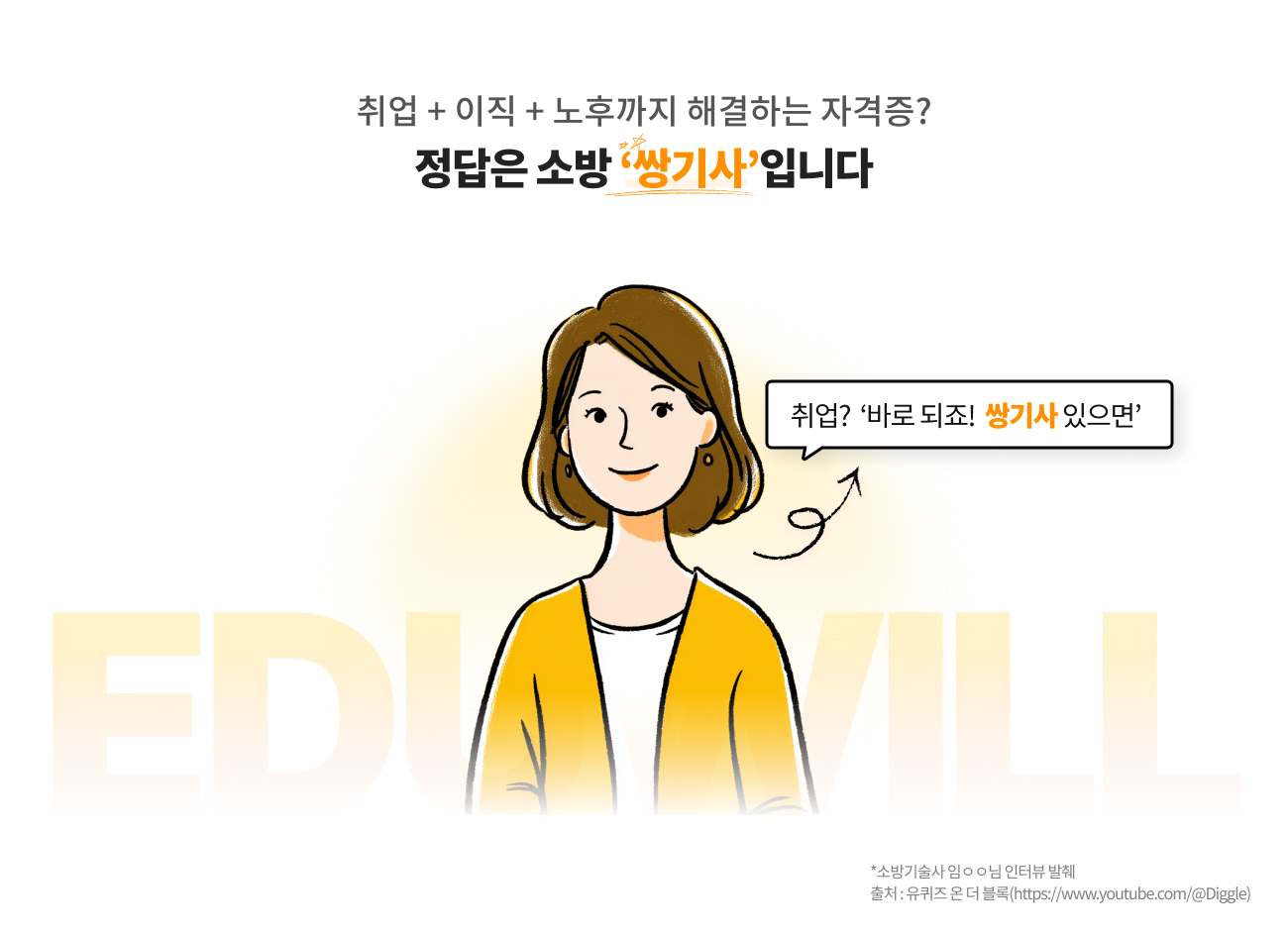 자격증 없이 직장을 다니다 노후 대비로 에듀윌 강의를 통해 소방설비기사에 합격했습니다.